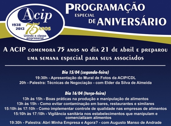 Começa hoje a semana especial de aniversário da ACIP, com apresentação de fotos e palestra