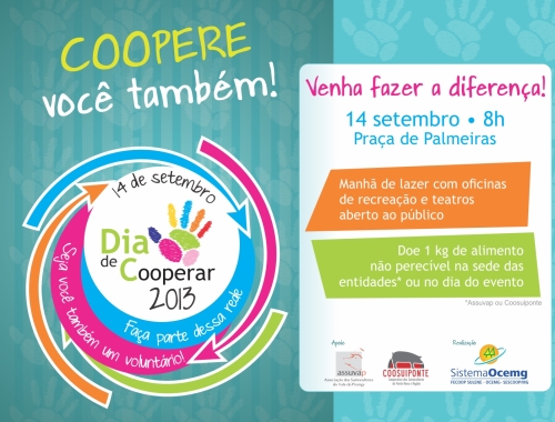 ACIP/CDL participa neste sábado do Dia de Cooperar O Sistema Ocemg, juntamente com a Assuvap/Coosuiponte e Banco Sicoob, realizam neste sábado (14/09) em Ponte Nova o “Dia C” – Dia de Cooperar 2013. O evento será realizado de 8h às 12h, na Praça de Palmeiras. O Dia de Cooperar conta com o apoio e a […]