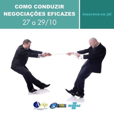 Últimas vagas para minicurso sobre técnicas para conduzir negociações Para ter sucesso profissional, saber negociar é fundamental. E a ACIP/CDL e o SEBRAE oferecem uma oportunidade única de capacitação para empresários, gestores e vendedores. É o minicurso “Como conduzir negociações eficazes”, que será realizada a partir da próxima segunda-feira (27/10). Em apenas três dias, os […]
