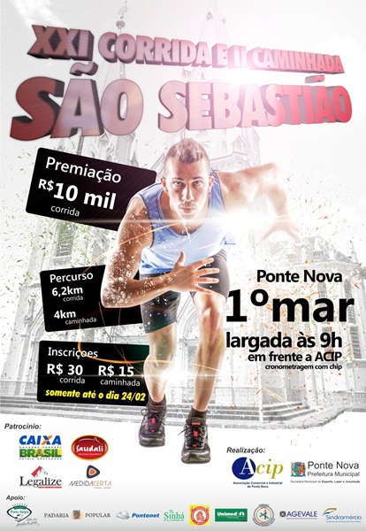 Continuam abertas as inscrições para a XXI Corrida e II Caminhada de São Sebastião Continuam abertas as inscrições para a 21ª Corrida e a 2ª Caminhada de São Sebastião. O evento será no dia 1º de março de 2015, a partir das 9h, com largada e chegada na Praça Getúlio Vargas. A realização é da […]