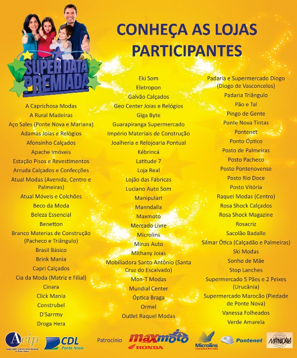 Lista atualizada das lojas participantes da Super Data Premiada!