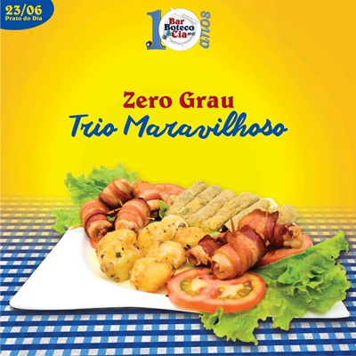 Hoje tem “Prato do Dia” no Zero Grau A programação do “Prato do Dia” do Bar, Boteco & Cia 2015 começa mais cedo nesta semana. Nesta terça-feira (23/06), é a vez do Zero Grau sediar a ação. Venha experimentar o prato “Trio Maravilhoso”, além de curtir o som de Cristiano Provenzani e concorrer a vários […]