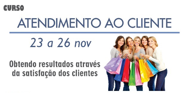 Inscrições abertas para o curso Atendimento ao Cliente Continuam abertas as inscrições para o curso Atendimento ao Cliente, que será realizado pela ACIP/CDL e pelo SEBRAE de 23 a 26 de novembro. Confira abaixo as informações detalhadas. São apenas 30 vagas. Garanta já o seu lugar!