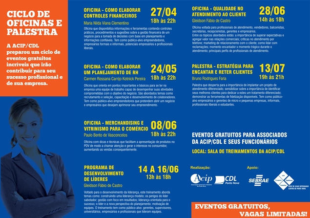 Atualizada a lista de oficinas gratuitas para sua empresa CLIQUE NA IMAGEM ACIMA PARA VISUALIZAR O ARQUIVO EM ALTA RESOLUÇÃO