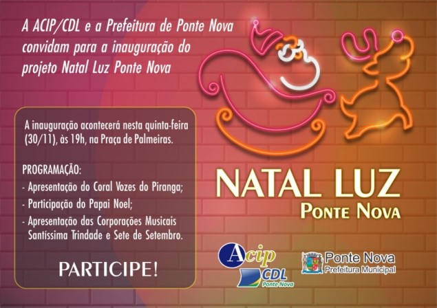 Em comemoração aos 25 anos do lançamento da Campanha de Natal em nosso município, a ACIP/CDL e a Prefeitura lançam oficialmente nesta quinta-feira (30/11), a partir das 19h, a inauguração da iluminação de Natal, dentro do projeto “Natal Luz de Ponte Nova”. O grande destaque do projeto será na Praça de Palmeiras, com instalação de […]
