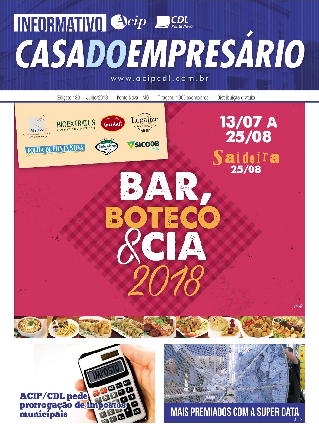 A nova edição do informativo da ACIP/CDL traz como destaque tudo sobre o festival gastronômico Bar, Boteco & Cia 2018, além de informações sobre a Super Data Premiada, o pedido de prorrogação de impostos municipais, dicas do SPC e de vendas pela internet, e muito mais. Clique aqui ou baixe o arquivo abaixo e boa leitura! […]