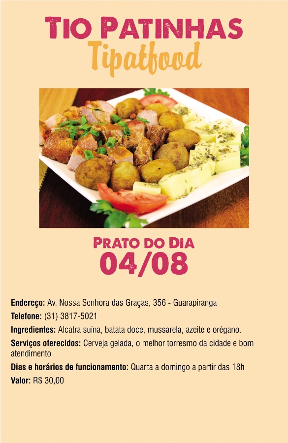 Vem mais casa cheia por aí! Neste sábado (04/08), o “Prato do Dia” será realizado no quarto estabelecimento participante do festival. A partir das 19h, o Tio Patinhas oferecerá aos clientes o prato “Tipatfood”. Veja os detalhes acima. E a noite terá ainda sorteio de brindes de empresas parceiras e show com o músico […]