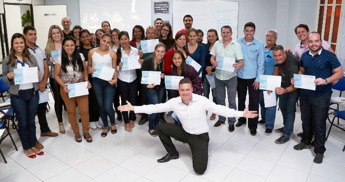 Leandro Quintão (agachado, ao centro) com os participantes do curso Nos dias 17 e 18 de setembro, a ACIP/CDL realizou em sua sede o curso “A Fórmula da Máquina de Vendas”, com o consultor e palestrante Leandro Quintão. A capacitação foi marcada devido ao sucesso da palestra realizada no mês de agosto, em Ponte Nova, […]