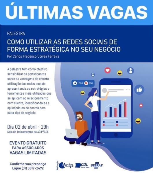 Na próxima terça-feira (02/04), a ACIP/CDL e o SEBRAE irão realizar a segunda palestra gratuita de 2019. O tema irá abordar a melhor utilização das redes sociais nas empresas, destacando as vantagens do seu uso de maneira correta e eficiente, de acordo com cada segmento. A palestra será na Sala de Treinamento da ACIP, às […]