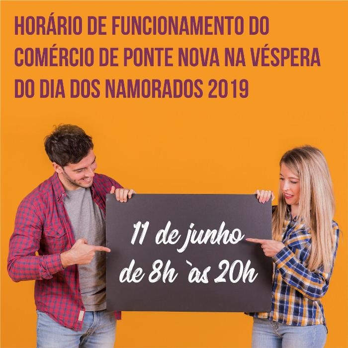 Horário de funcionamento do comércio de Ponte Nova na véspera do Dia dos Namorados 2019