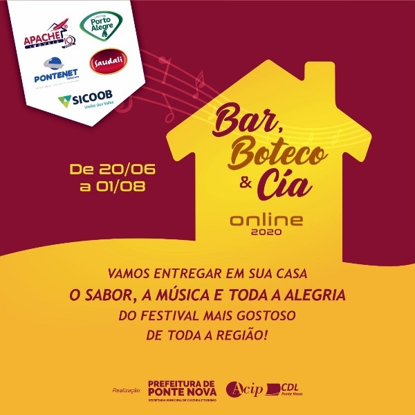 De 20 de junho a 1º de agosto de 2020, a ACIP/CDL e a Prefeitura de Ponte Nova irão realizar o festival gastronômico Bar, Boteco & Cia. O evento tem o patrocínio da Apache Imóveis, Laticínios Porto Alegre, Pontenet, Saudali e Sicoob. Vamos explicar abaixo, de forma detalhada, como será esta edição. 100% ONLINEEm função […]