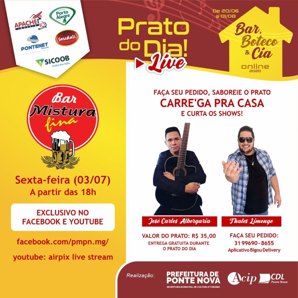 Mais duas edições do “Prato do Dia” neste fim de semana! Nesta sexta-feira (03/07), o evento será no Bar Mistura Fina, a partir das 18h. O estabelecimento irá servir o prato “Carre’ga pra Casa”, exclusivamente por delivery. As atrações musicais serão José Carlos Albergaria e Thales Limonge. E no sábado (04/07), também a partir das […]