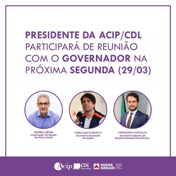 Presidente da ACIP/CDL participará de reunião com Governador Romeu Zema