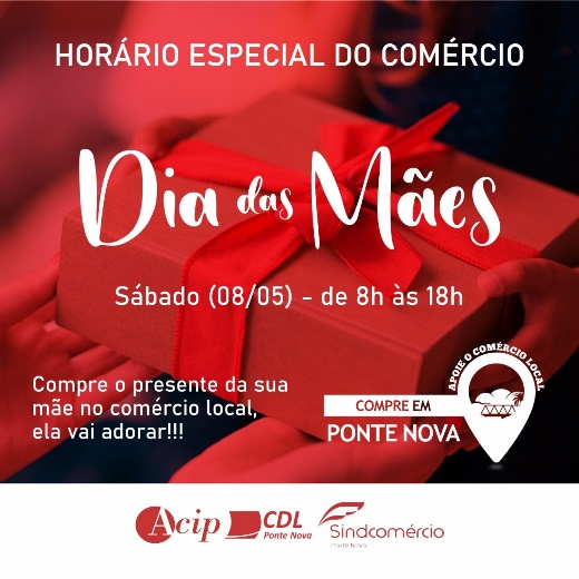 O comércio de Ponte Nova irá funcionar em horário especial neste sábado, dia 8 de maio, podendo manter as portas abertas até 18h. Tudo isso para ampliar o período para você comprar o presente para sua mãe! Na hora de fazer suas compras, lembre-se de seguir todas as orientações da pandemia. Use máscara, higienize as […]