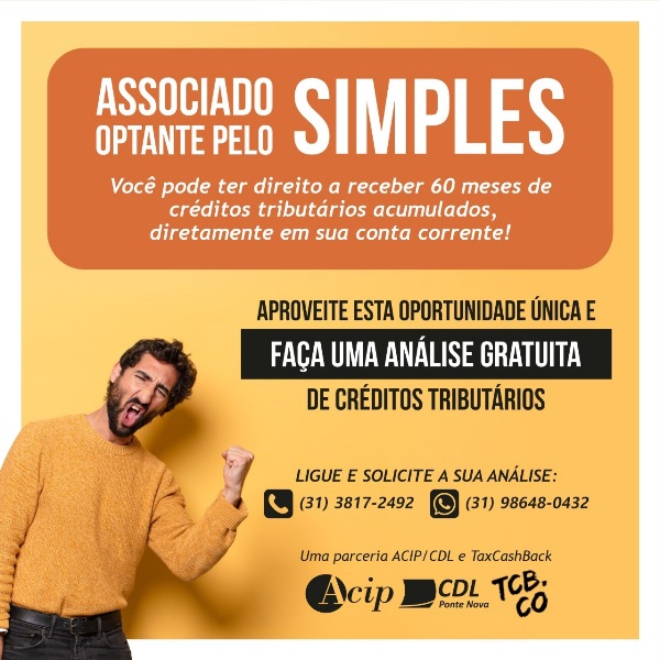 Pensando sempre em novos benefícios para nossos associados, a ACIP/CDL lança mais uma novidade! Em parceria com a a Tax Cash Back (TCB.CO), estamos oferecendo uma análise gratuita para recuperação de créditos tributários. Segundo o IBGE, 95% das empresas optantes pelo SIMPLES, dos mais variados segmentos, pagam impostos indevidamente, relativos ao PIS/COFINS monofásico. O crédito […]