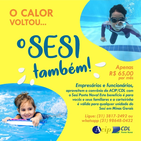 Nunca é demais lembrar: associados da ACIP/CDL podem frequentar as instalações do clube do SESI em Ponte Nova! O valor é de apenas R$ 65/mês, e pode ser usado tanto pelos empresários quanto pelos seus funcionários e familiares. E mais: fazendo a filiação no SESI, você pode frequentar qualquer unidade do clube dentro de Minas […]