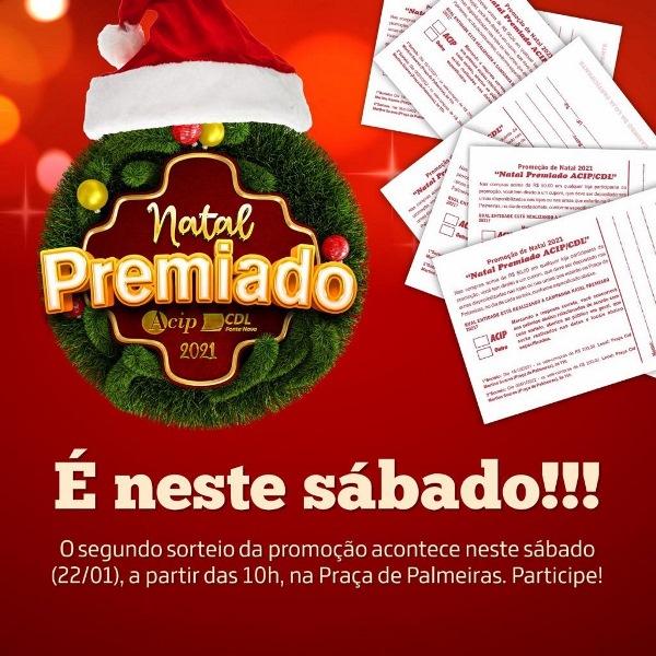 A ACIP/CDL definiu a nova data para o sorteio final da campanha Natal Premiado. Será no próximo sábado, dia 22 de janeiro, a partir das 10 da manhã, na Praça de Palmeiras. Serão 54 vale-compras de R$ 200 pra usar nas lojas da promoção! Se você ainda tem cupons, deposite nas urnas e boa sorte! […]