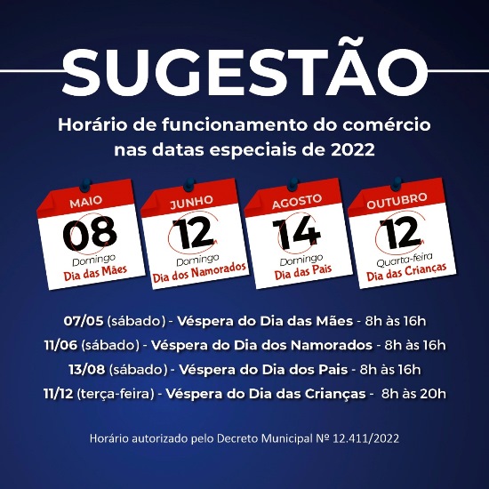 Horário especial de funcionamento do comércio nas datas especiais de 2022