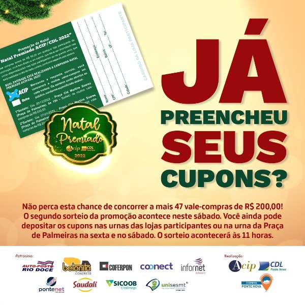 Não vai deixar o seu cupom sem preencher, né? Ainda dá tempo! Sábado (07/01) acontecerá o último sorteio da nossa campanha Natal Premiado!