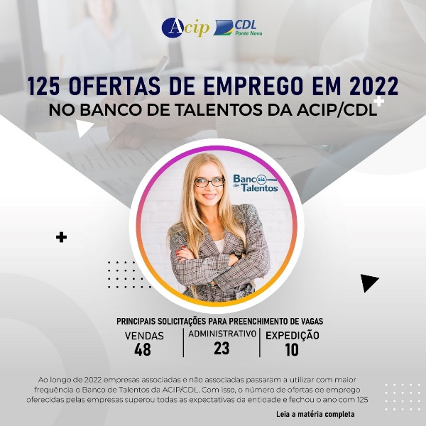 Ao longo de 2022, empresas associadas e não associadas passaram a utilizar com maior frequência o Banco de Talentos da ACIP/CDL. Com isso, o número de ofertas de emprego oferecidas pelas empresas superou todas as expectativas da entidade e fechou o ano com 125 vagas ao todo. Isso representa mais de 10 vagas em […]