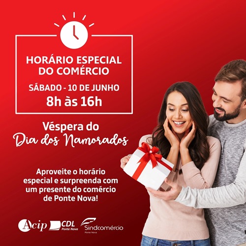 Aproveite o horário especial do Dia dos Namorados e surpreenda com um presente do comércio de Ponte Nova!