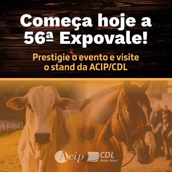 A 56ª edição da Expovale, no Parque de Exposições de Ponte Nova, começa hoje e vai até domingo. Venha prestigiar e aproveite para conhecer a Feira Comercial ACIP/CDL, com stands de empresas da nossa região! A entrada é gratuita. O evento é uma realização do Sindicato dos Produtores Rurais de Ponte Nova, Prefeitura de Ponte […]