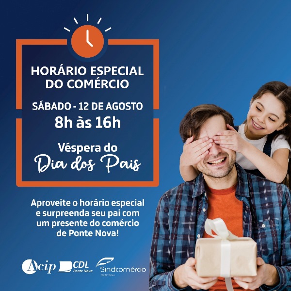 Aproveite o horário especial e compre o presente de Dia dos Pais no comércio de Ponte Nova!