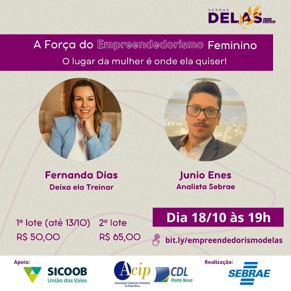 O Sebrae acredita na força da mulher e, junto com o Sicoob União, capacitou um grupo durante este ano. Nesta quarta-feira (18/10) iremos realizar o encerramento do Programa Sebrae Delas 2023 e trazer insights para o programa em 2024. Não fique de fora e participe desse movimento de fortalecimento do Empreendedorismo Feminino! Fernanda Dias Coelho: […]