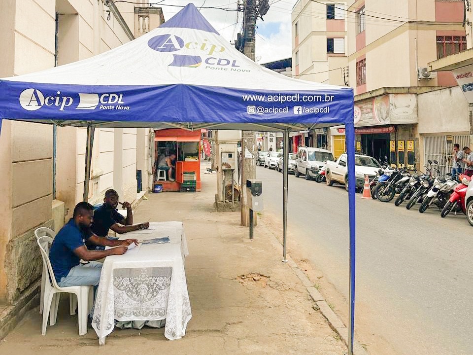 Tenda da ACIP/CDL na rua Santo Antônio