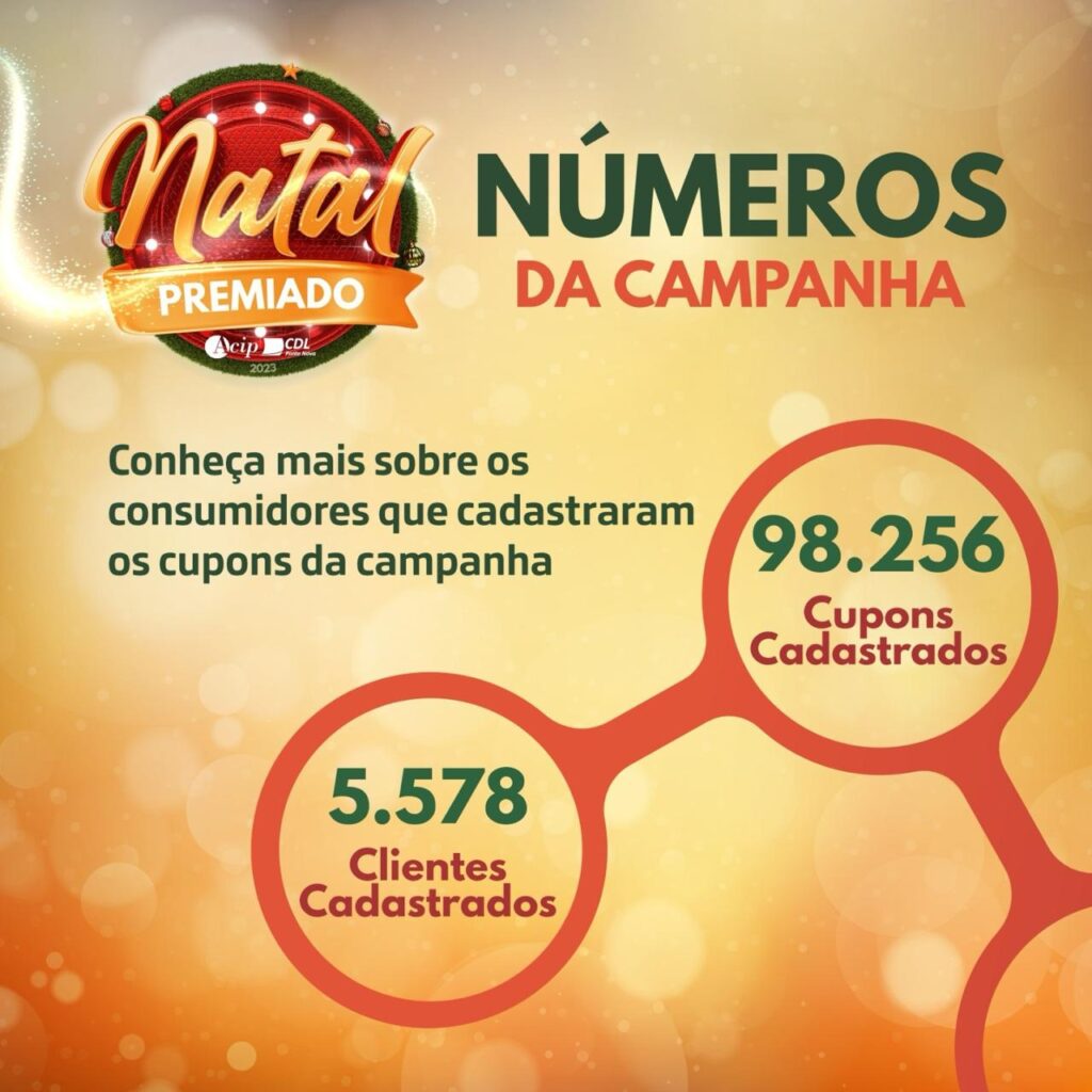 Em novo formato, com cupons que deveriam ser cadastrados no site ou aplicativo e prêmios instantâneos, a Campanha Natal Premiado ACIP/CDL 2023 foi encerrada com excelentes números. Foram mais de 98 mil cupons cadastrados por mais de 5,5 mil clientes. Destes, foram 69% de mulheres e 31% de homens. Com um cadastro bem simples, a […]