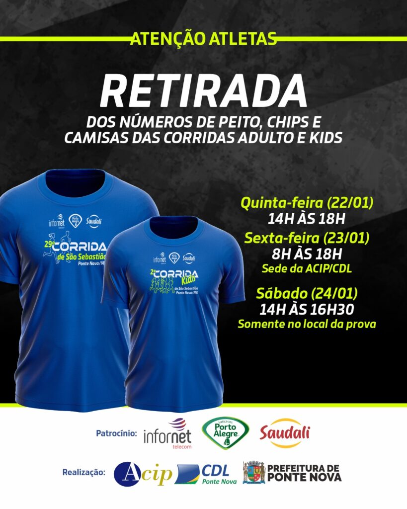 🚨 Atenção, atletas da Corrida de São Sebastião! 🏃♀️🏃♂️ Já está chegando a hora! A retirada dos kits...