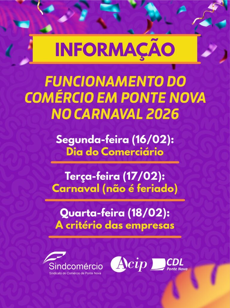SEGUNDA-FEIRA (16/02) – DIA ÚTIL: Horário normal, com recesso apenas para o Comerciário pela comemoração do seu dia...